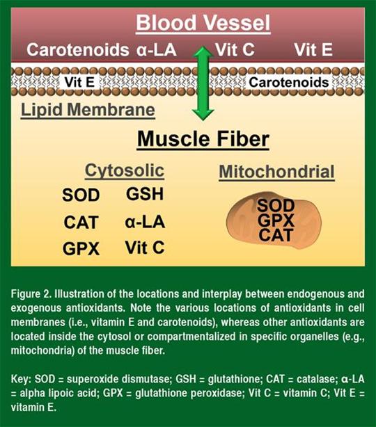Exercise induces radical production and the resultant exercise-induced oxidative stress in skeletal muscles impairs muscle force production and contributes to muscle fatigue during prolonged endurance exercise (Reid, 2008). The knowledge that exercise-induced radical production can damage skeletal muscle fibers and contribute to fatigue has motivated many endurance athletes to consume antioxidant supplements.